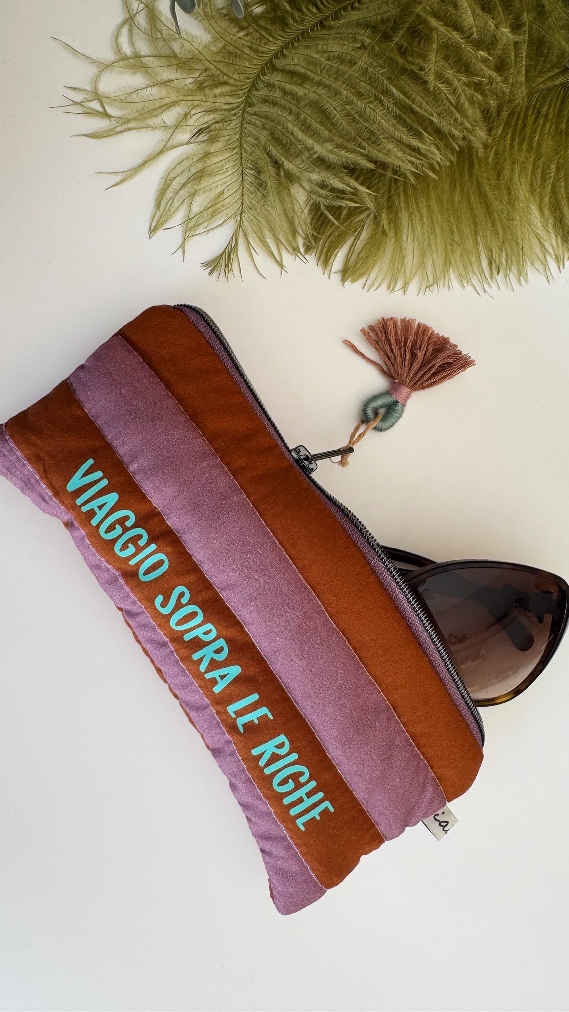 L’astuccio morbido e trapuntato, praticissimo per gli occhiali ma anche per le penne, matite, post-it essendo idrorepellente all’interno.