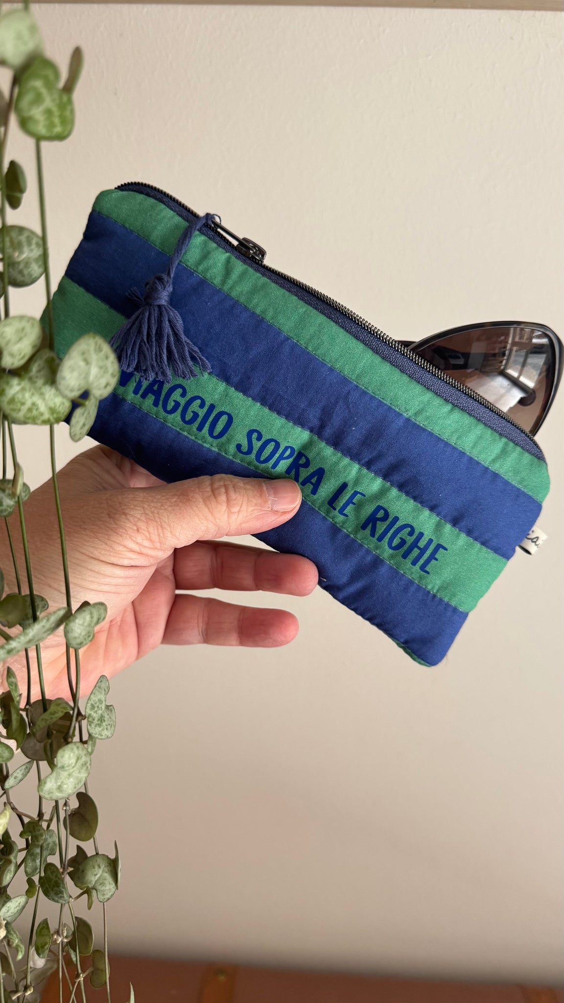 Astuccio trapuntato (Porta occhiali) - Verde & Indaco (Stripes)