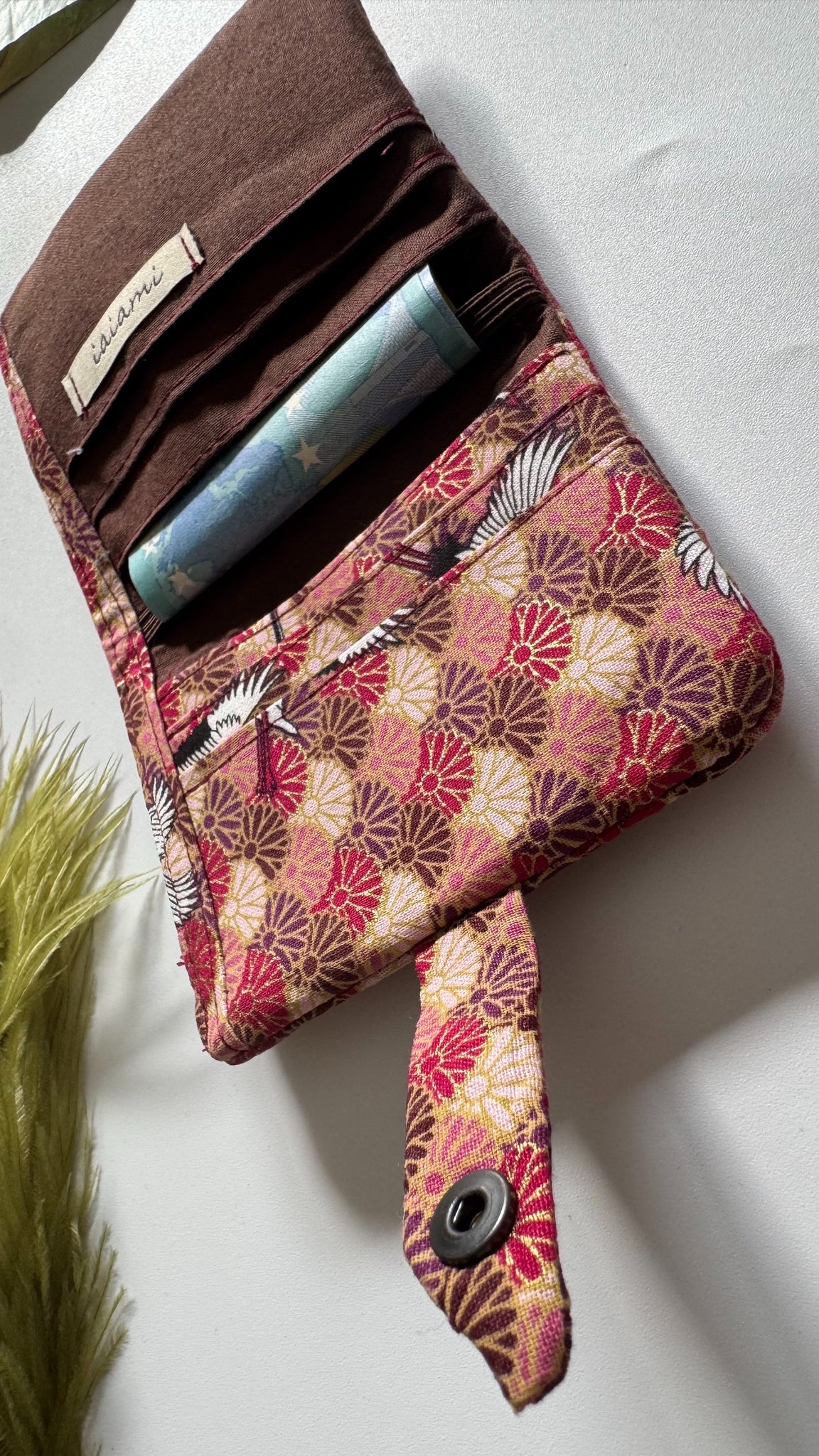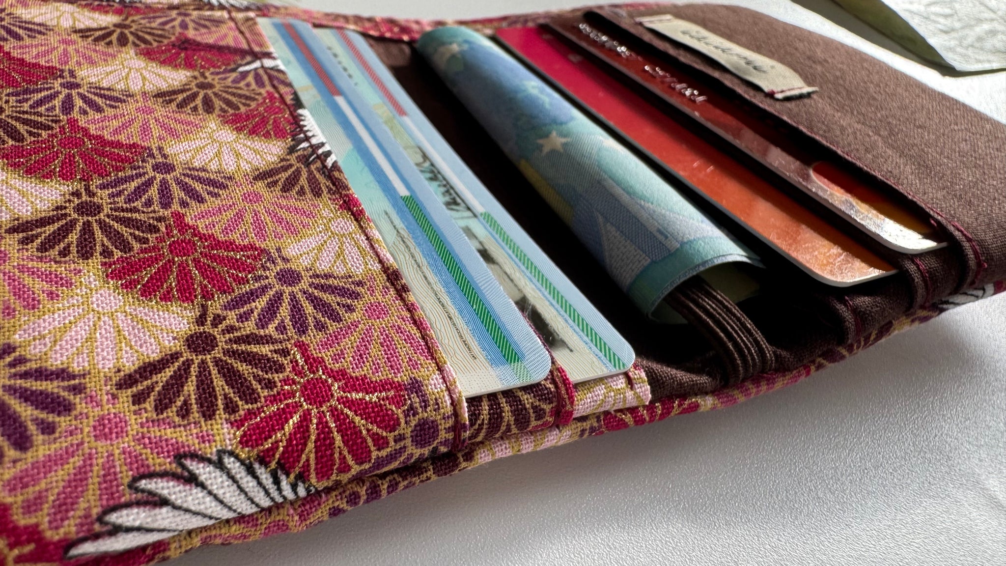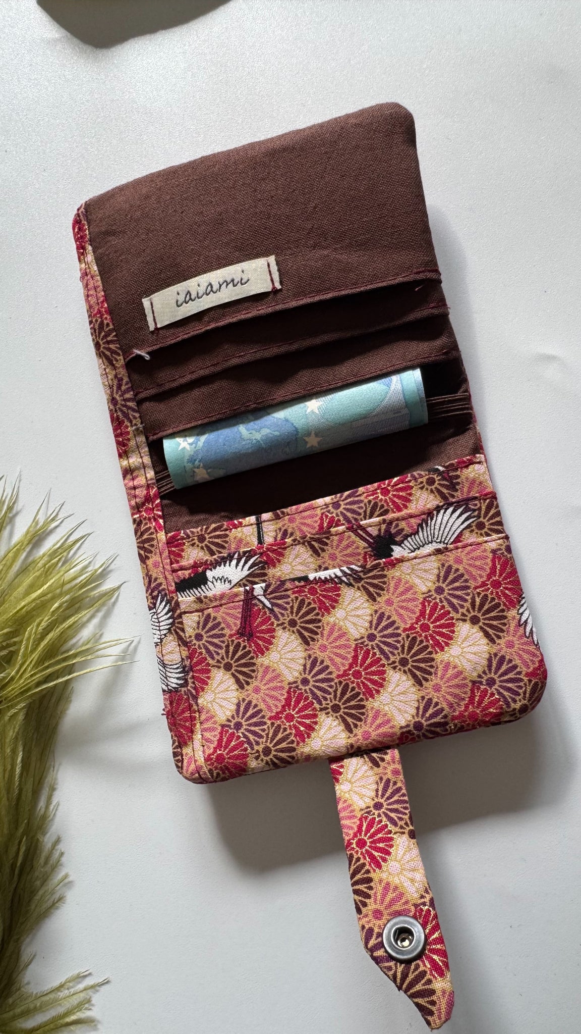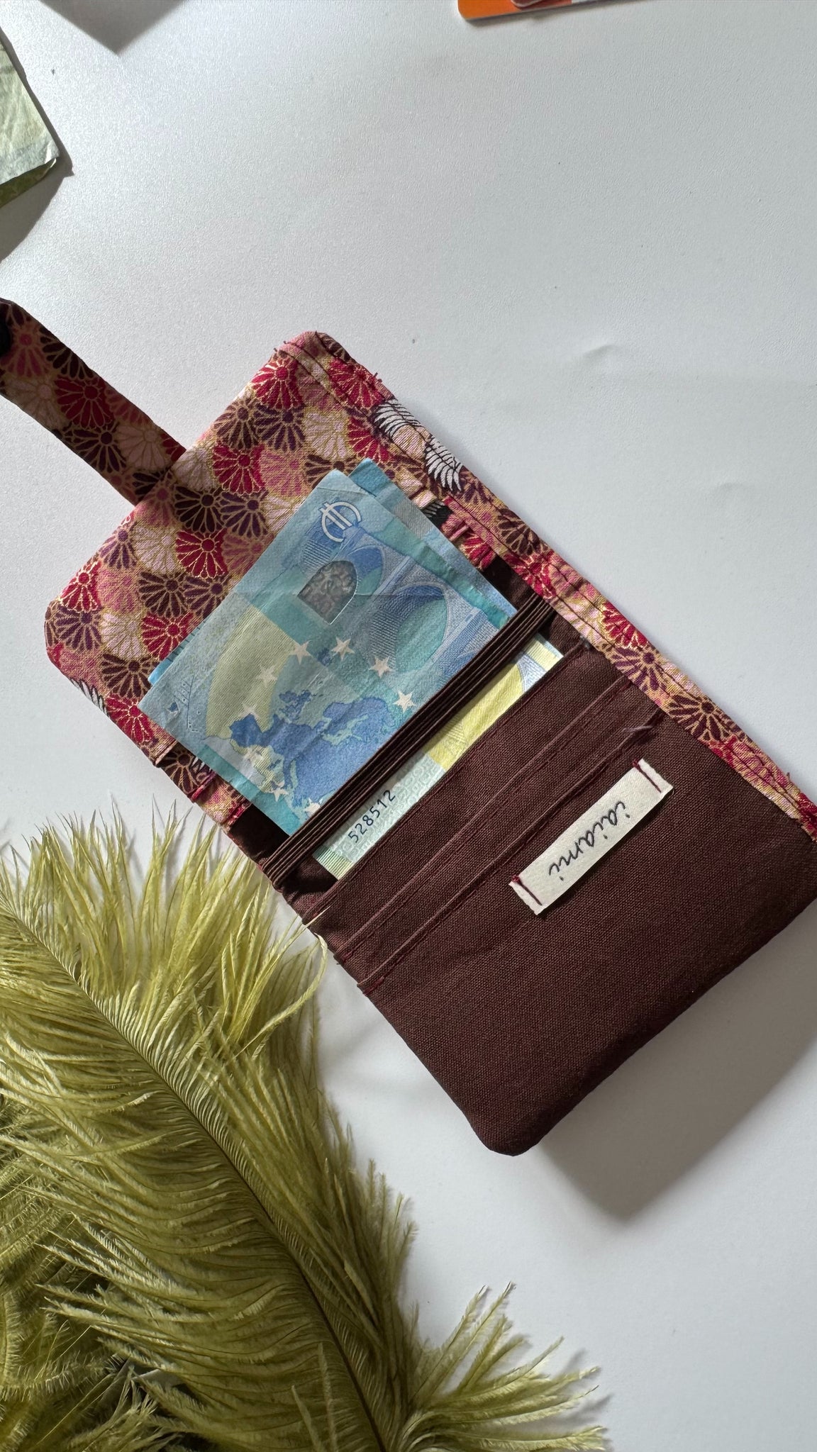 Il portafoglio è in tessuto di cotone, il tessuto e’ stato acquistato a Tokyo durante il mio viaggio in Giappone.