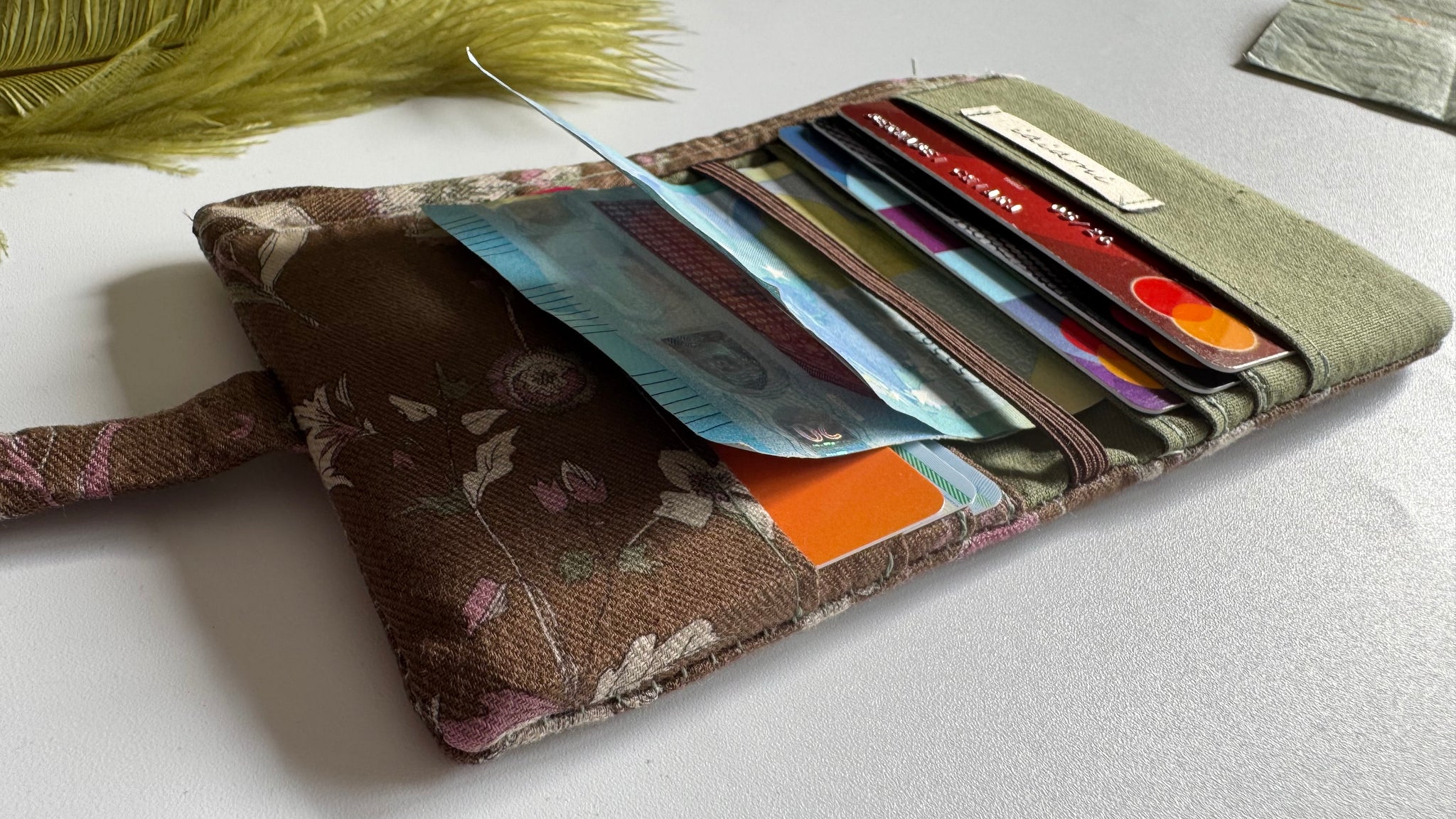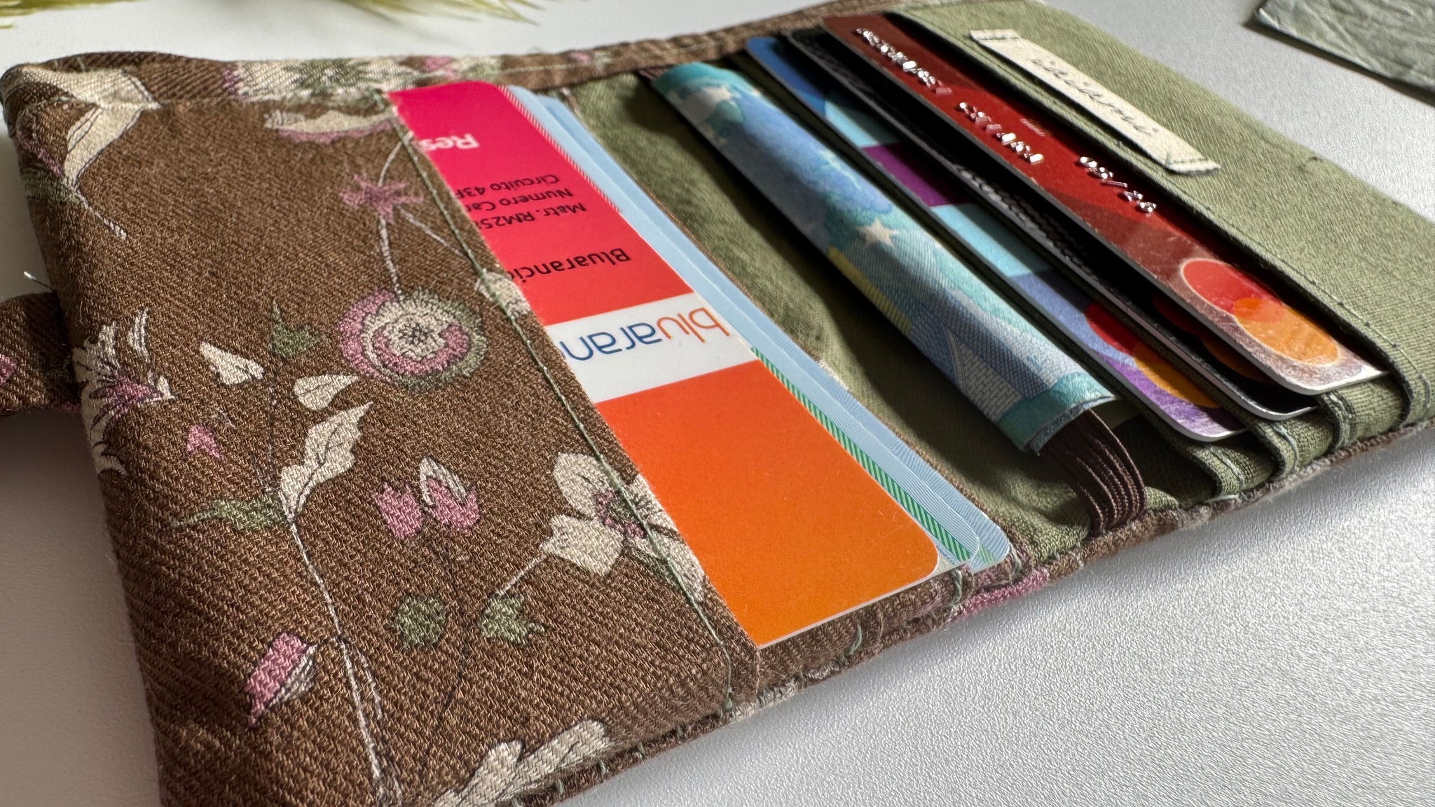 Il portafoglio è in tessuto di cotone, il tessuto e’ stato acquistato a Tokyo durante il mio viaggio in Giappone.