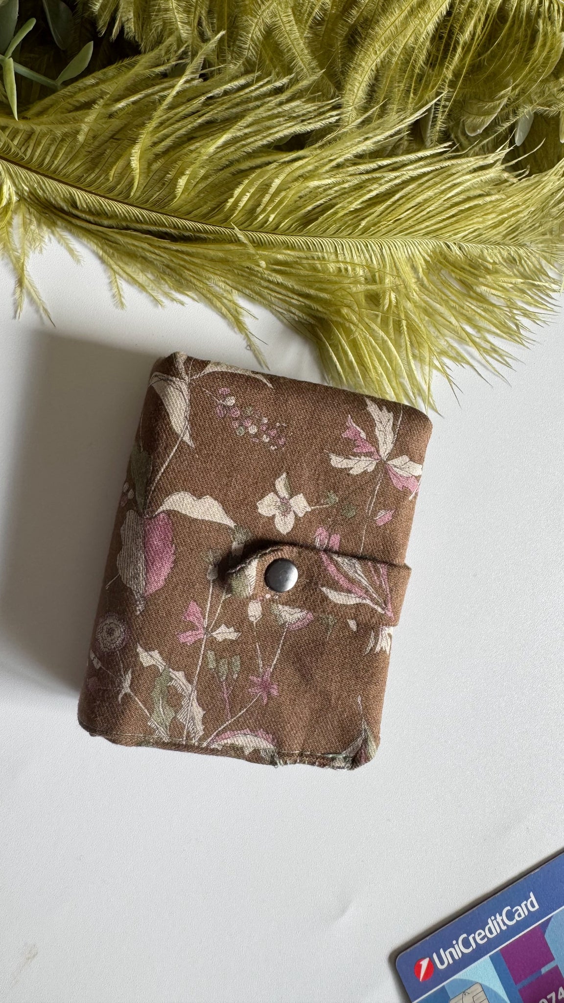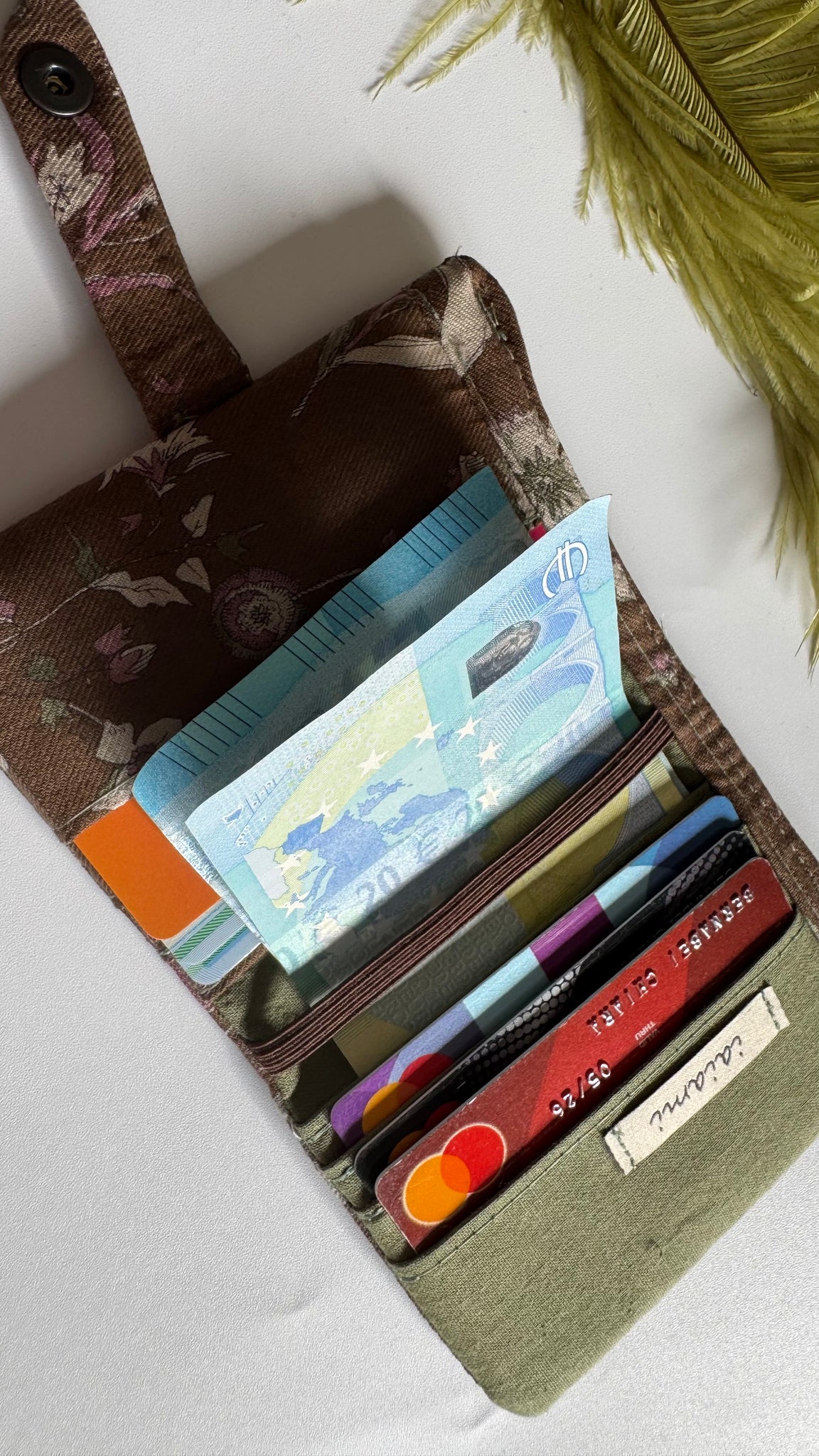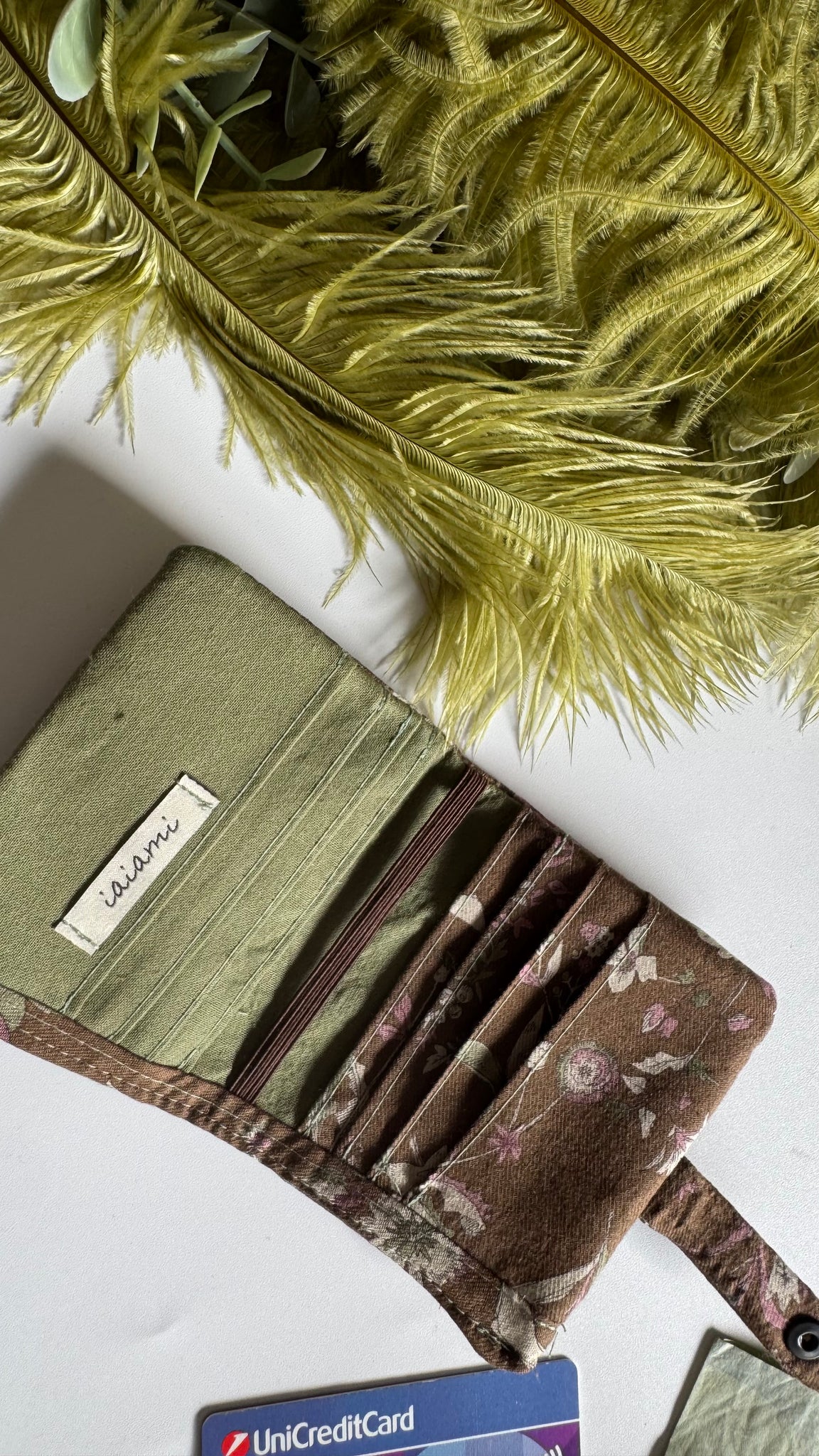 Realizzato a mano, ha 8 taschini, 6 per le tessere/carte e due più capienti.
