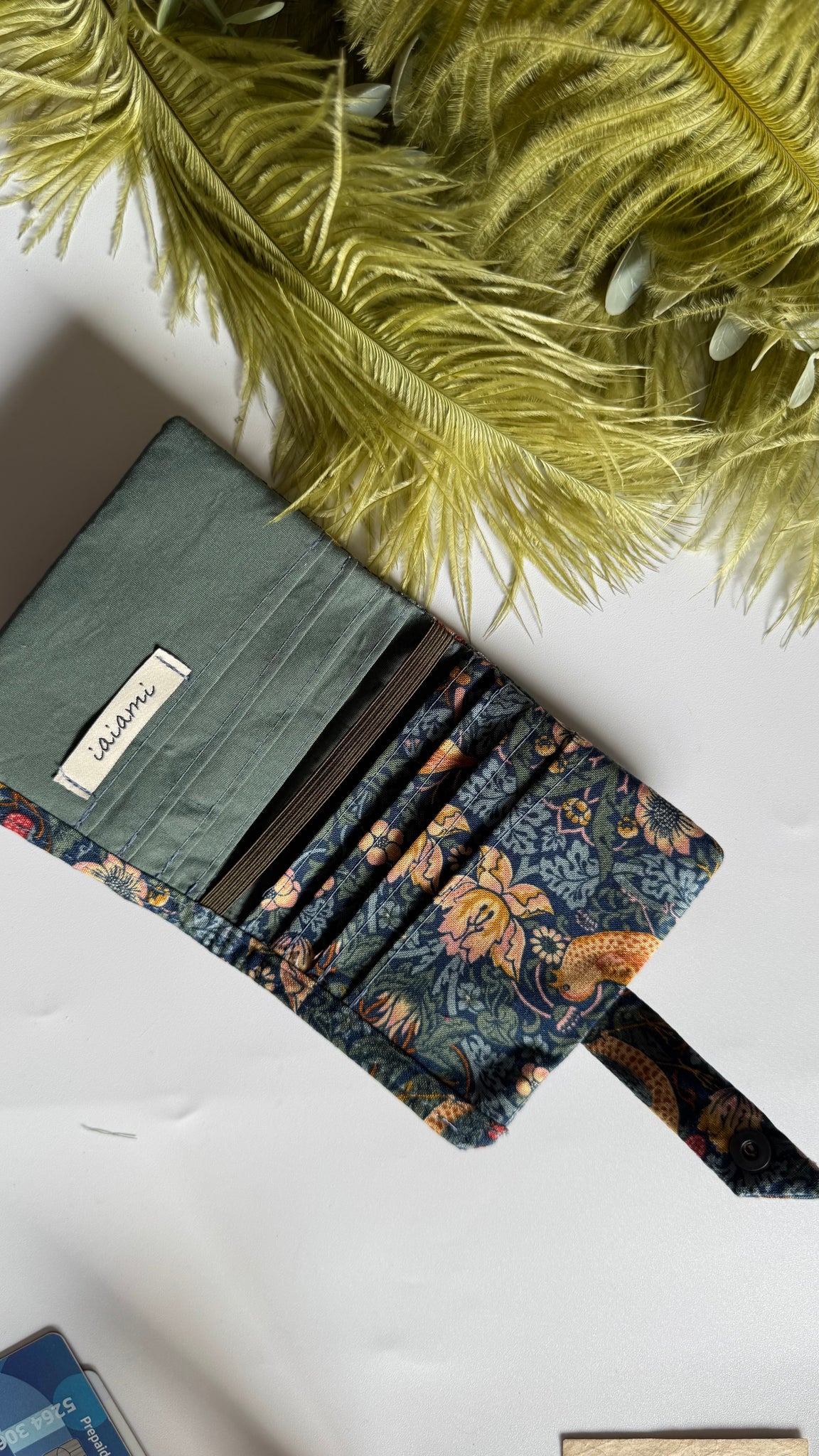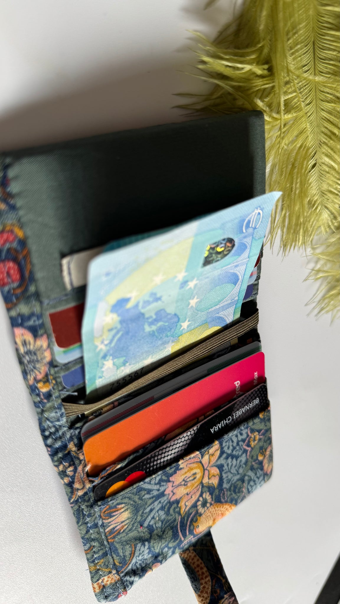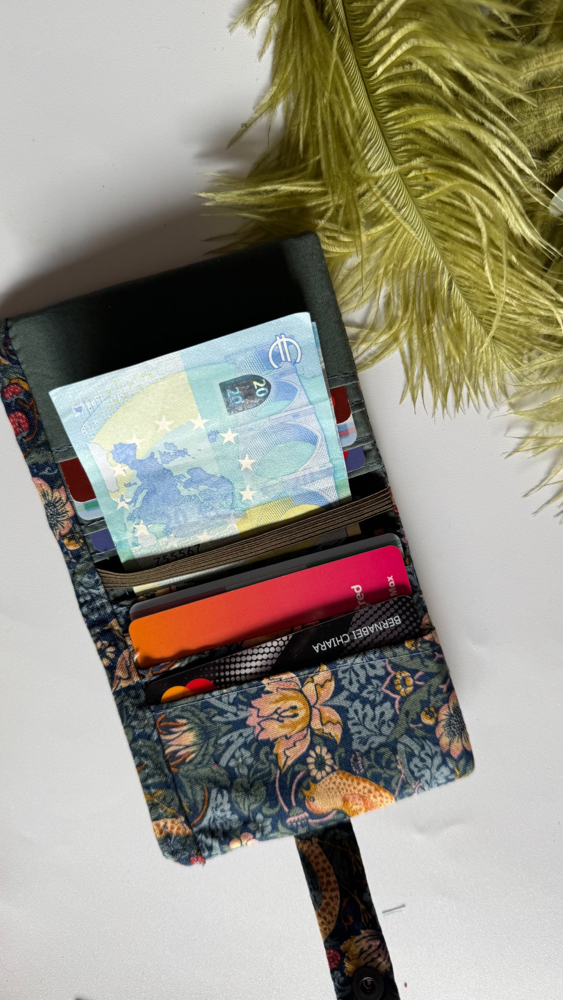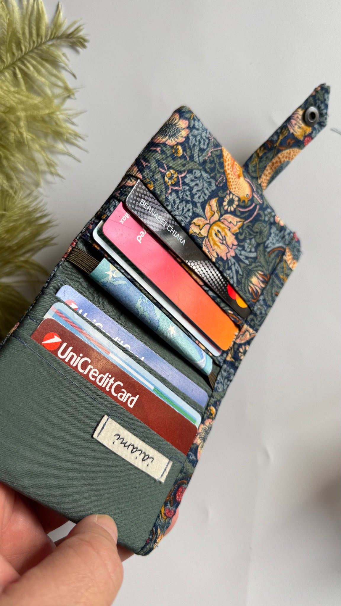 Il portafoglio è in tessuto di cotone, il tessuto e’ stato acquistato a Tokyo durante il mio viaggio in Giappone.