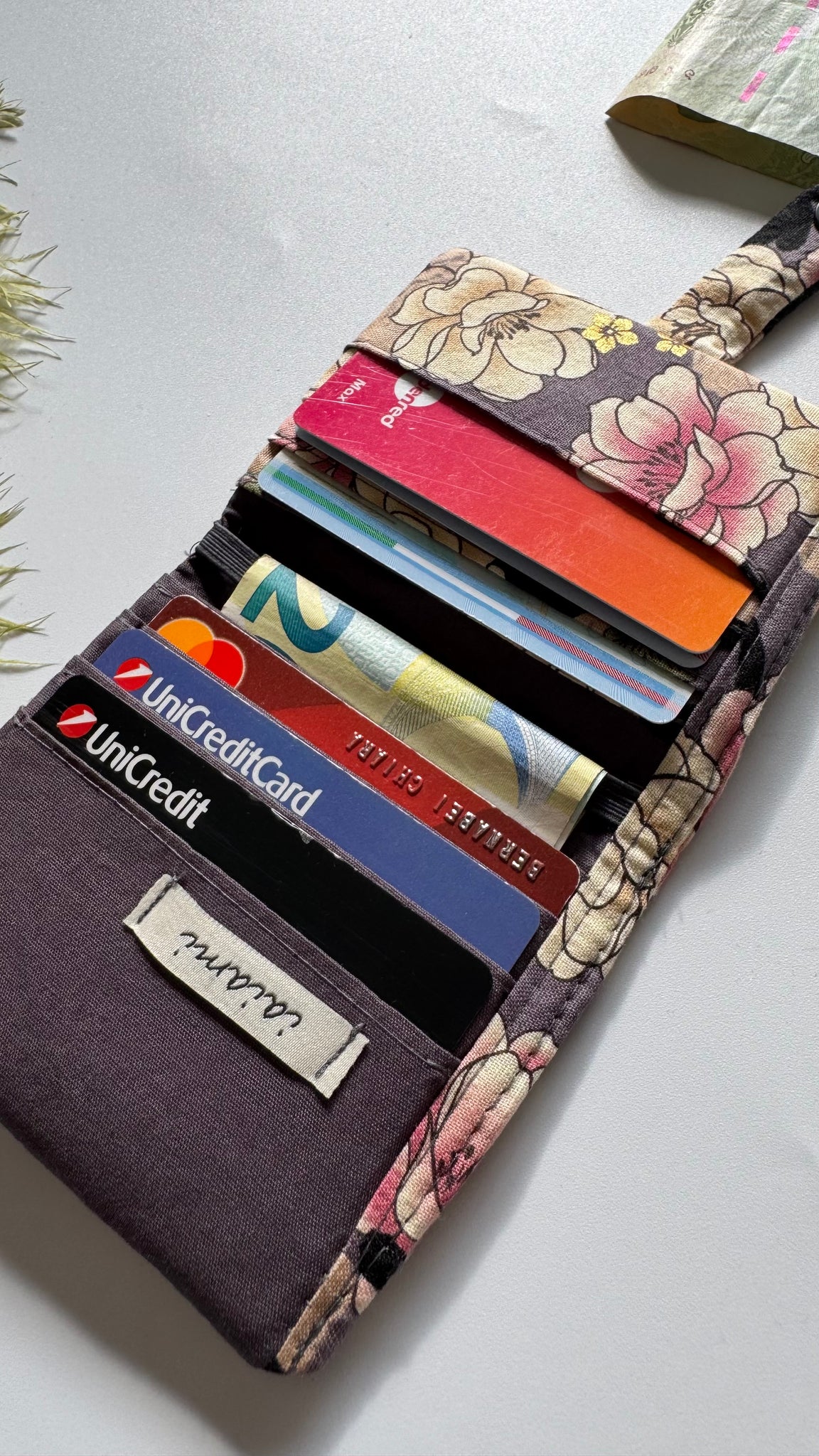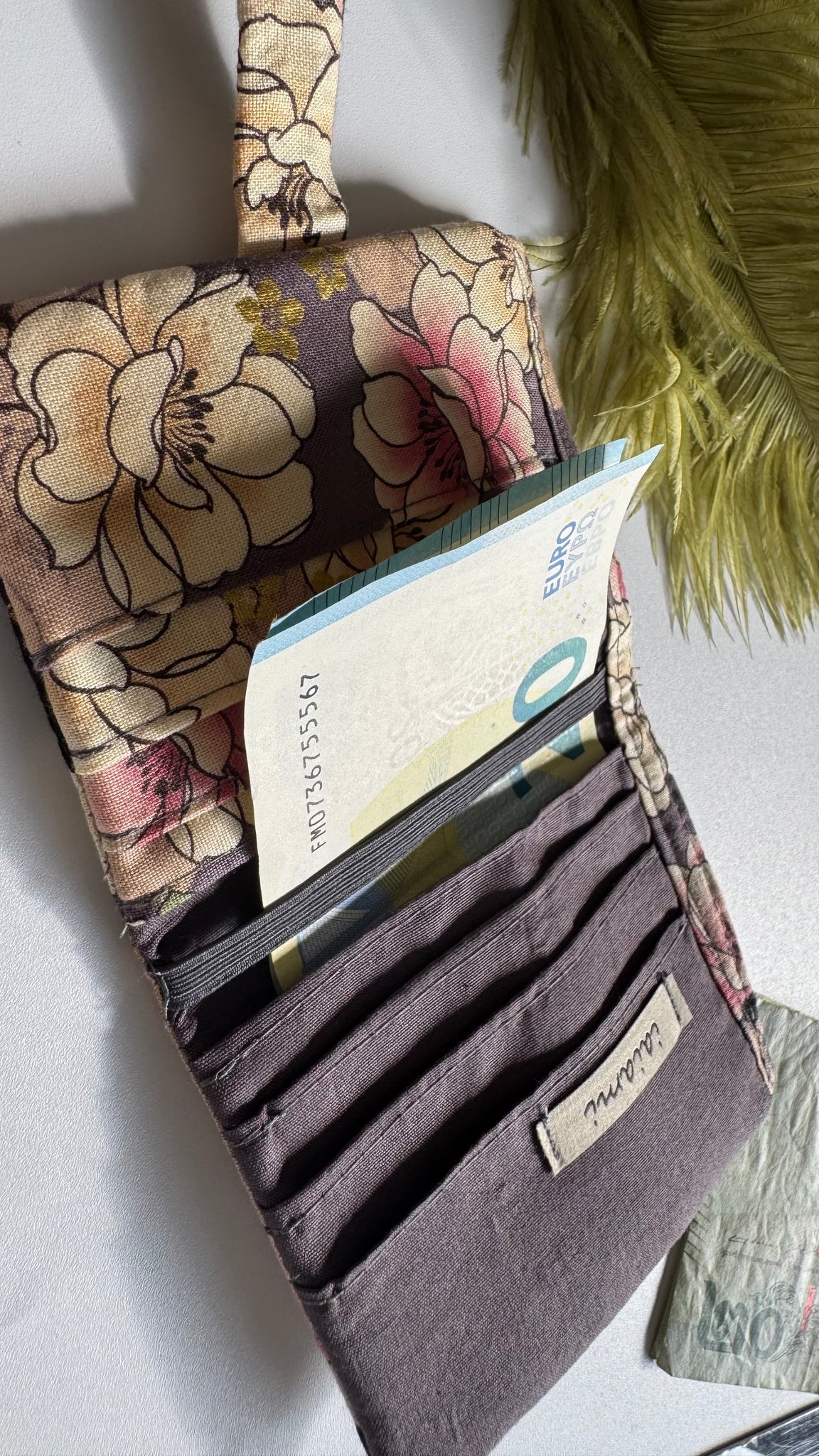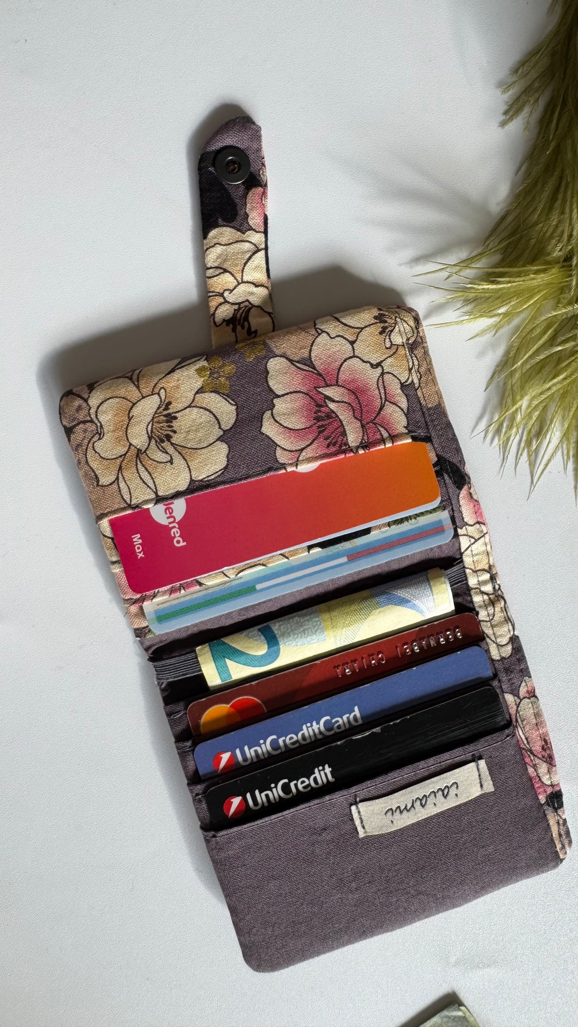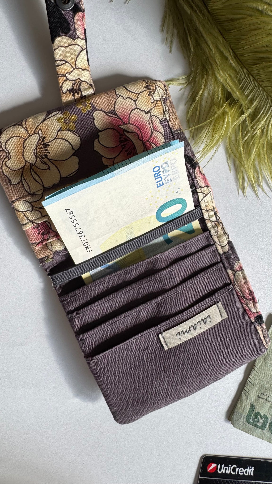Il portafoglio è in tessuto di cotone, il tessuto e’ stato acquistato a Tokyo durante il mio viaggio in Giappone.