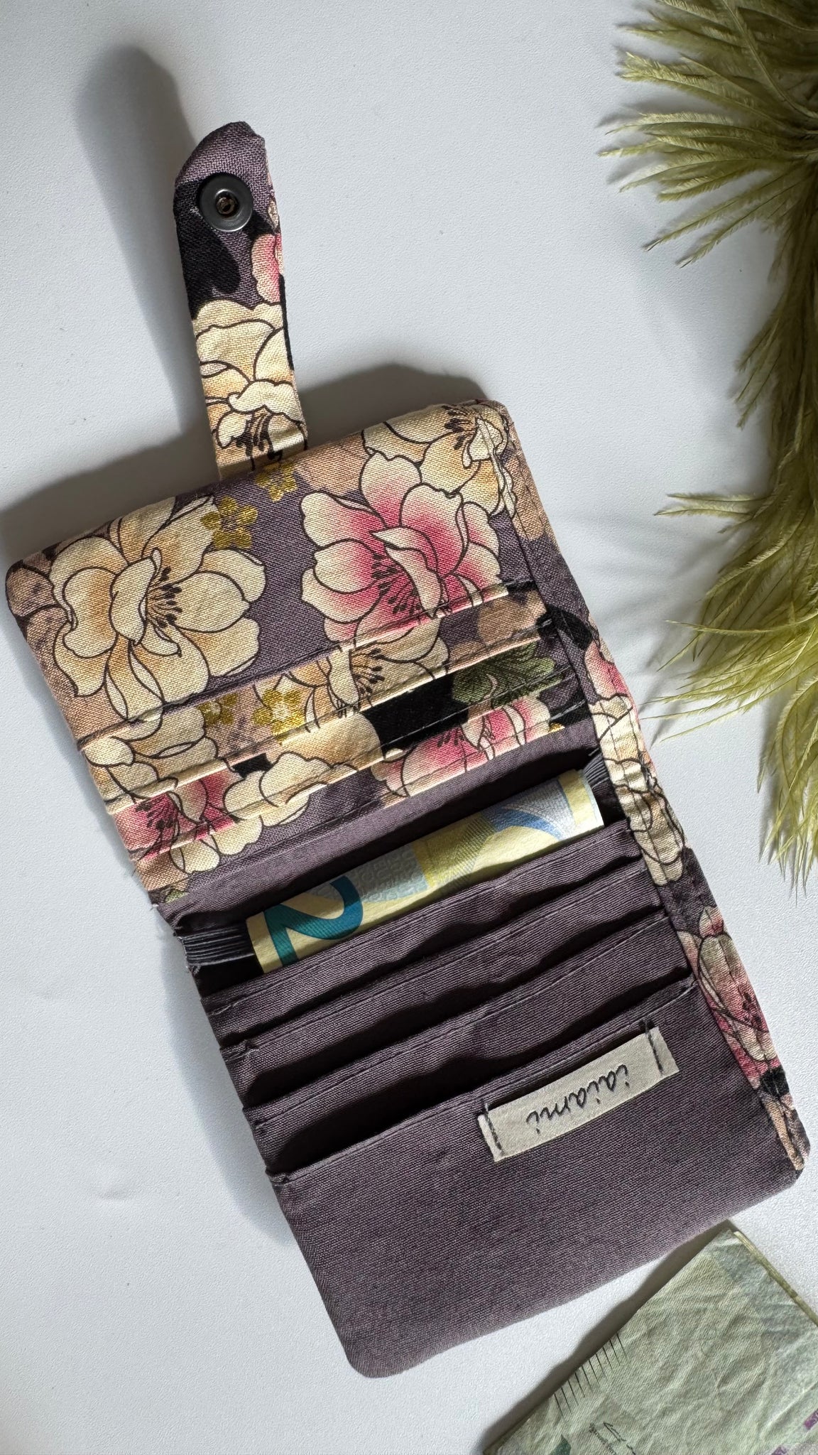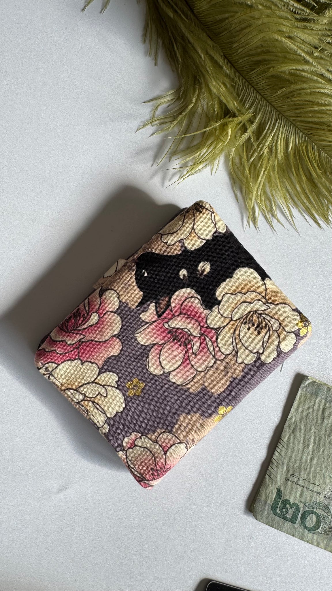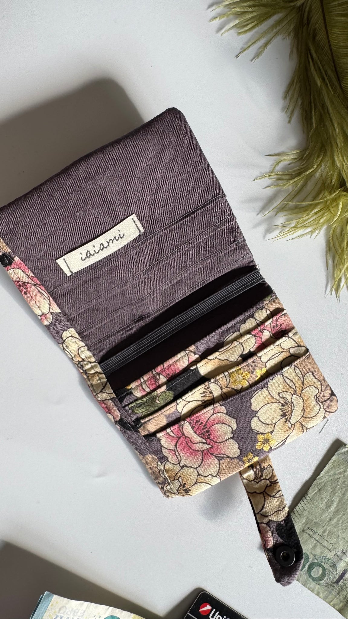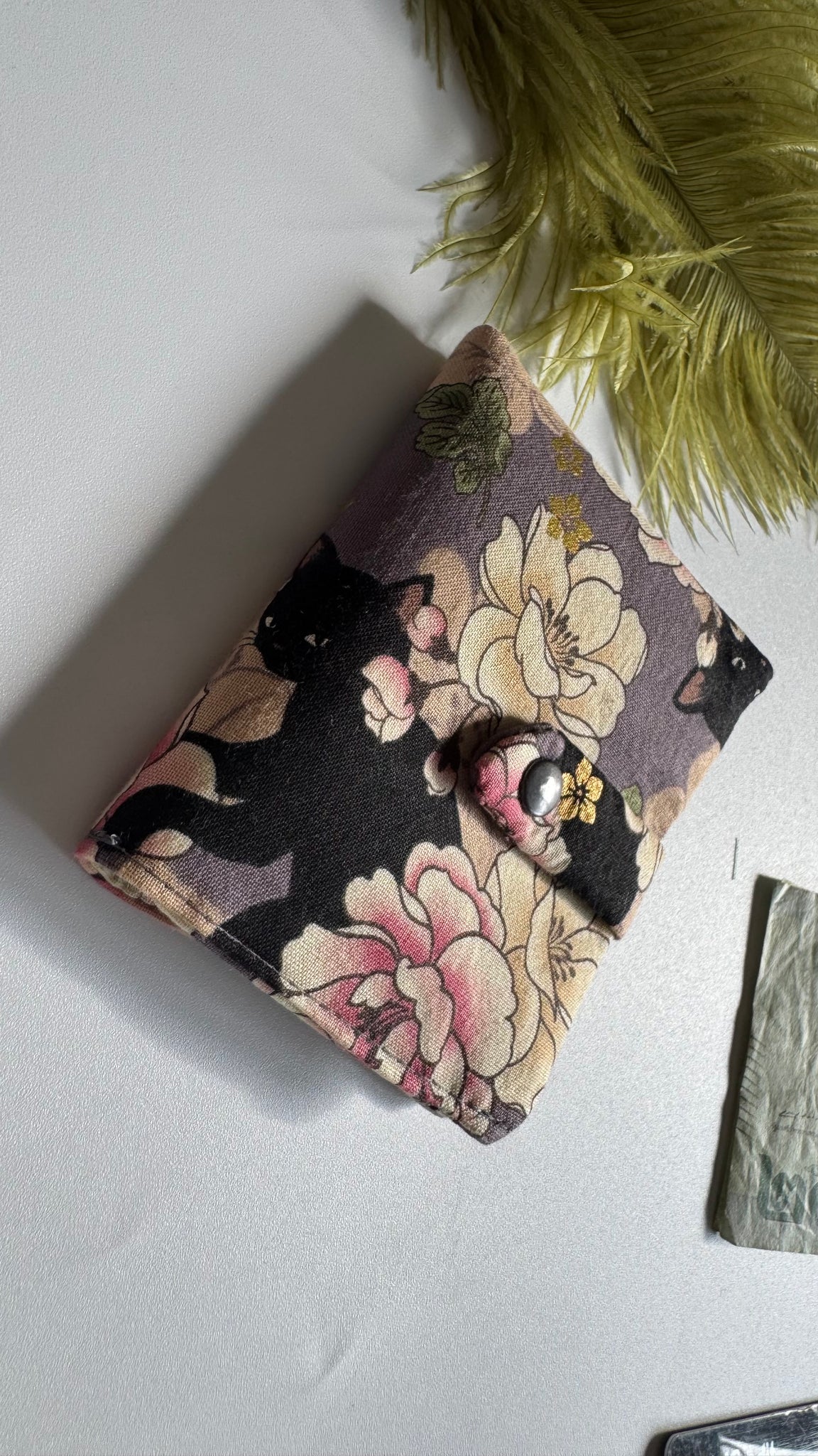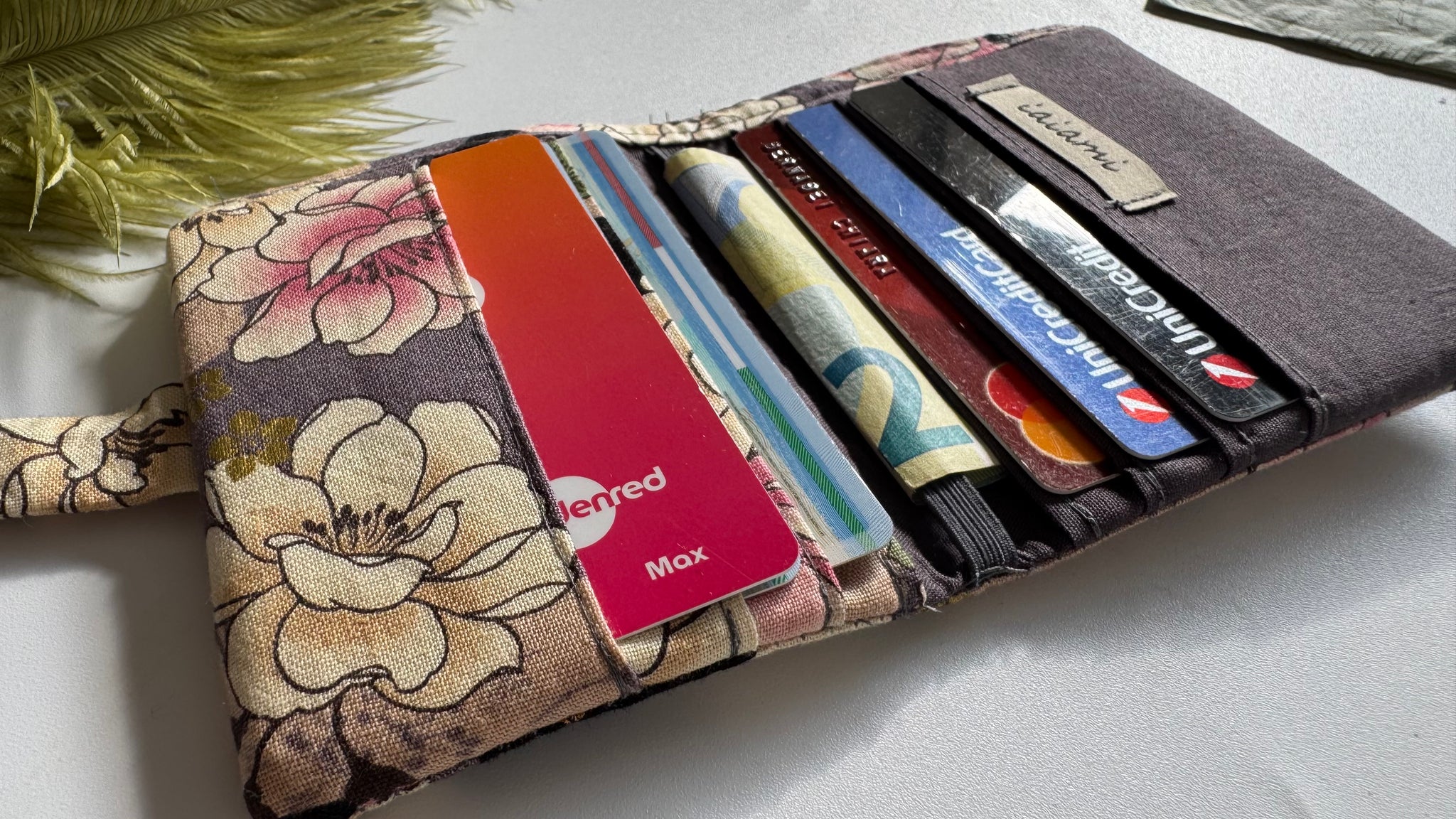 Il portafoglio è in tessuto di cotone, il tessuto e’ stato acquistato a Tokyo durante il mio viaggio in Giappone.