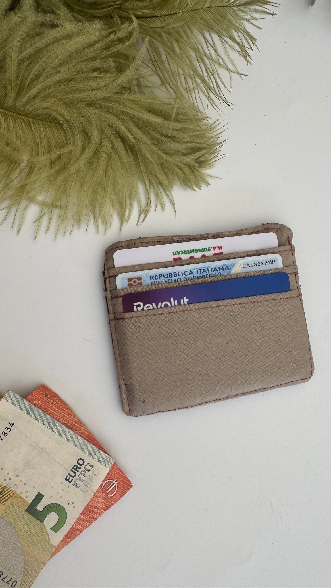 Il portatessere è un accessorio realizzato completamente a mano in tessuto di cotone 100%.