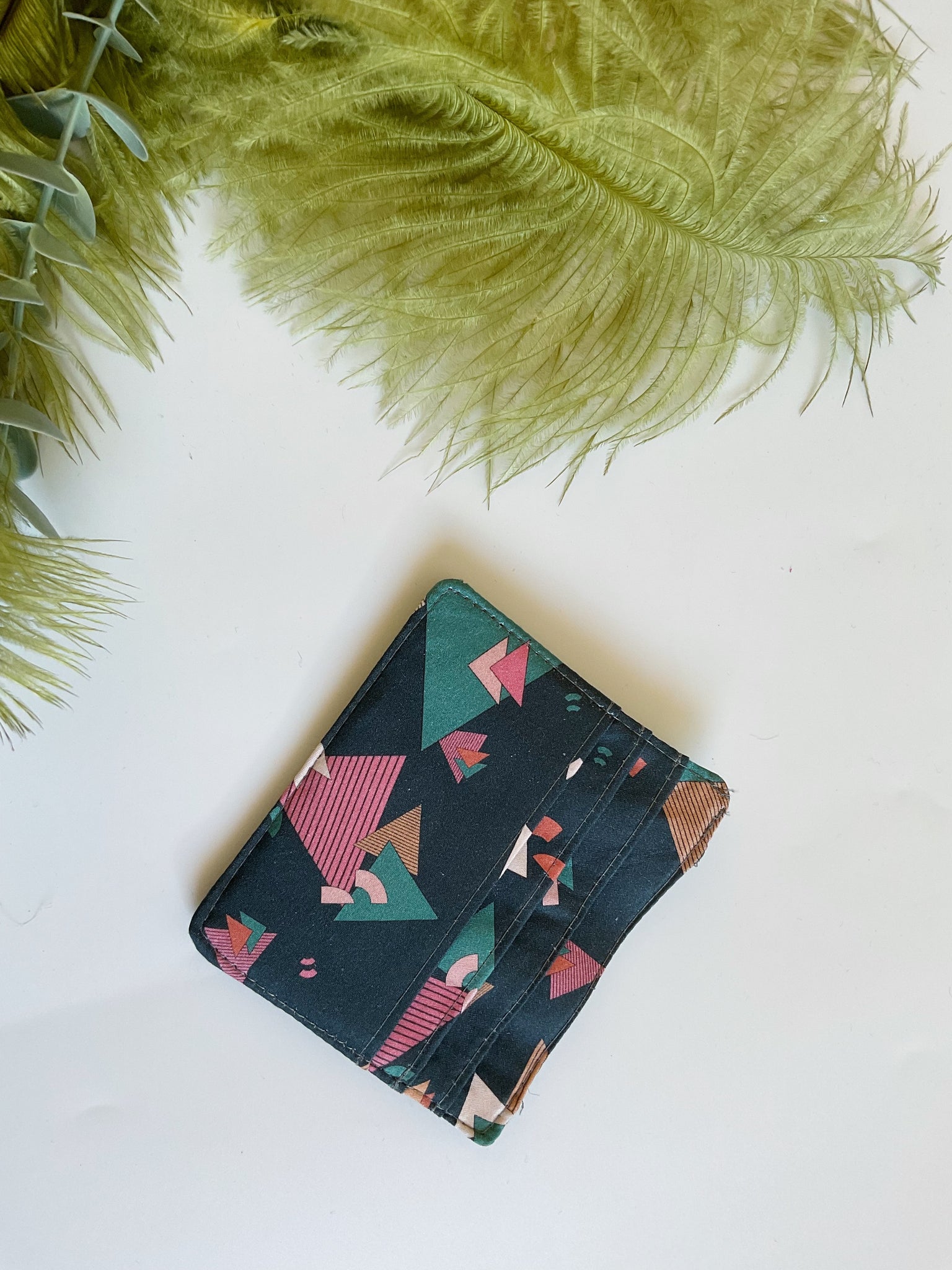 Ha 6 taschini per tessere e carte, su due lati in due fantasie coordinate.