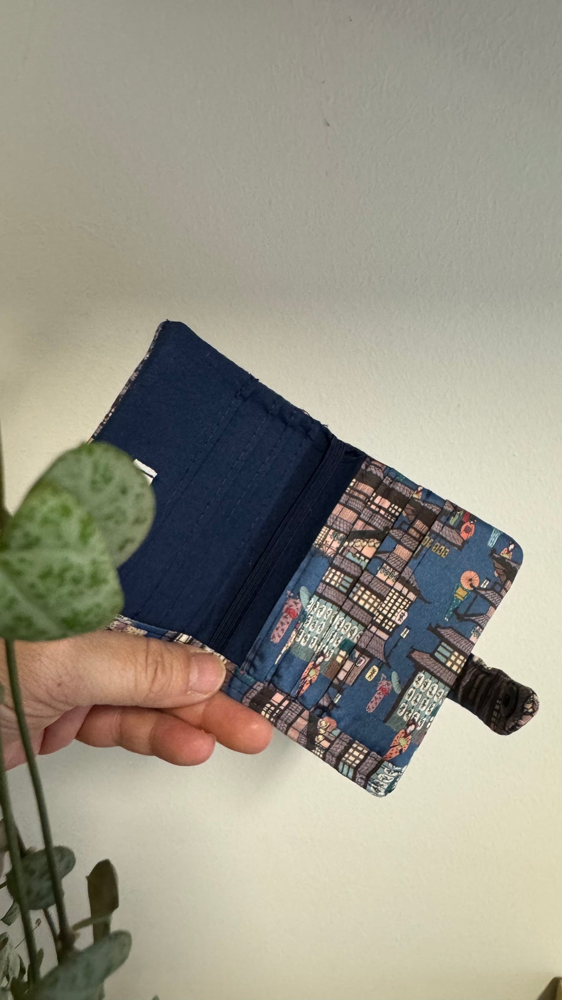 Realizzato a mano, ha 8 taschini, 6 per le tessere/carte e due più capienti.