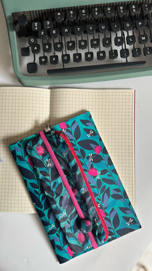 Kit Quaderno + Segnalibro + Astuccio mini - Magnolie e libellule (turchese)