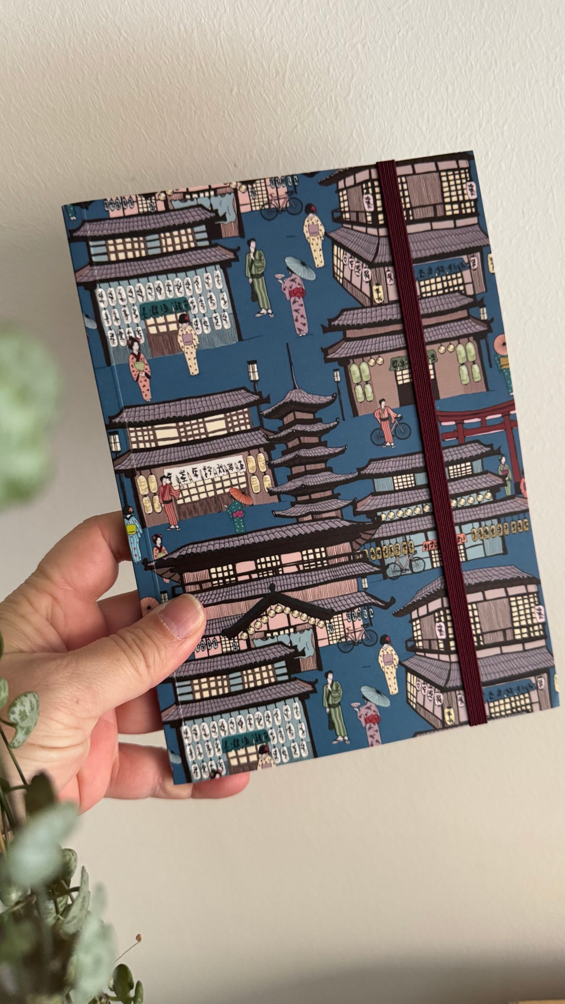 Un Quaderno formato A5 (14,8x21cm) con copertina 300gr. La copertina fronte e retro con stampa una grafica disegnata da iaiami è in carta Fedrigoni, marcata a feltro su entrambi i lati, certificata FSC, di pura cellulosa ECF.