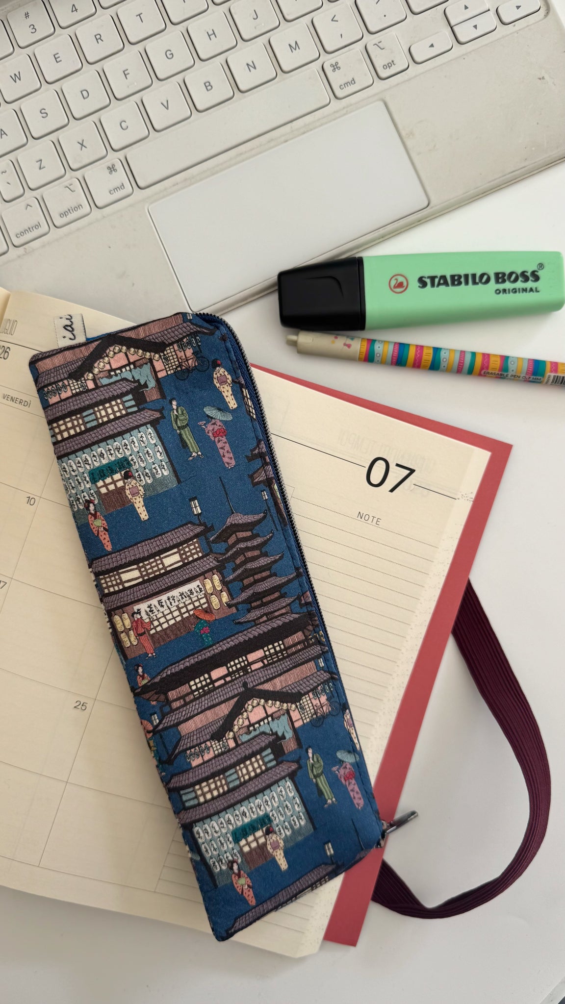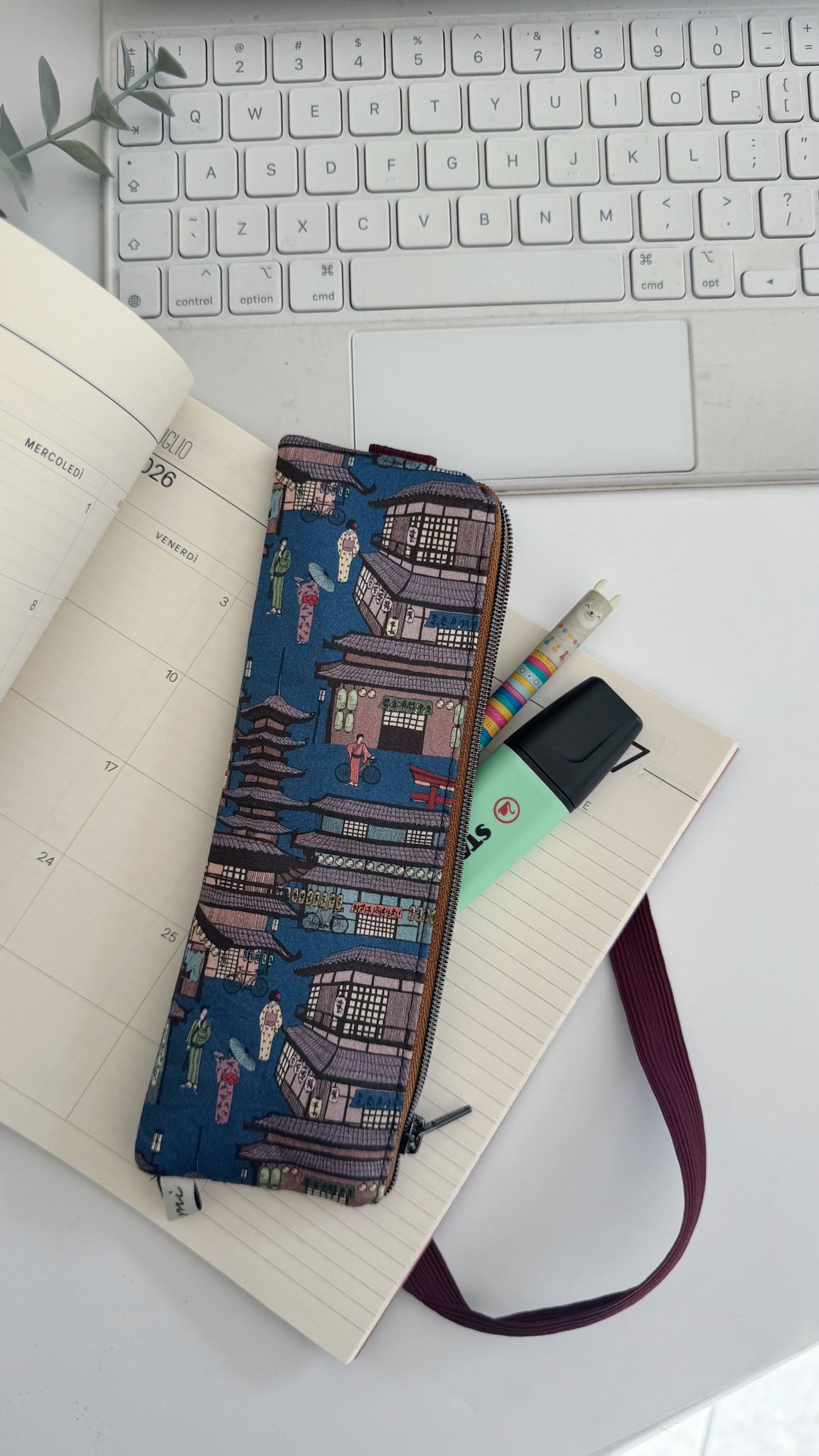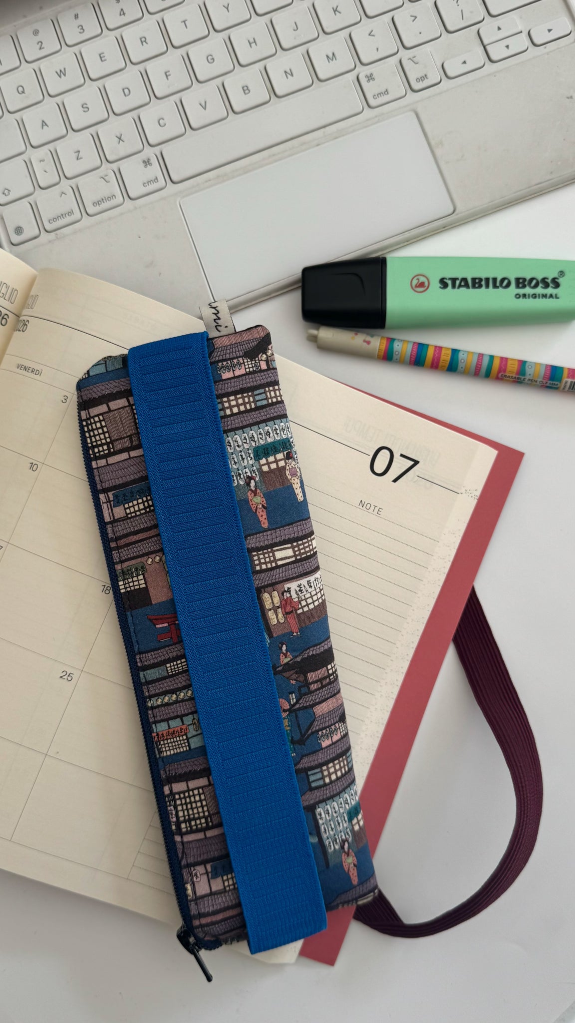 L’astuccio con elastico, praticissimo per non dimenticare penne, matite, post-it e tutto l’occorrente per la vostra agenda, taccuini e libri.
