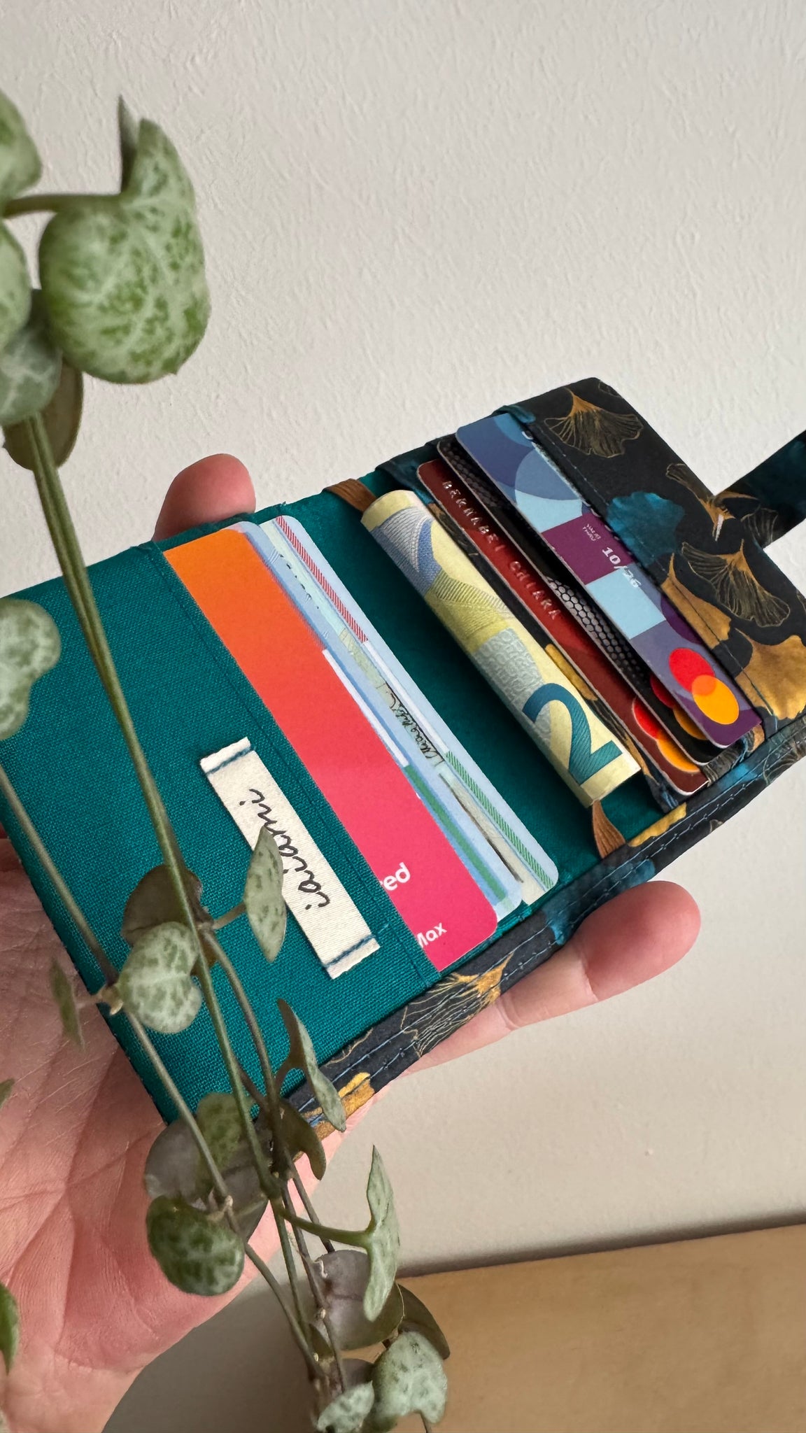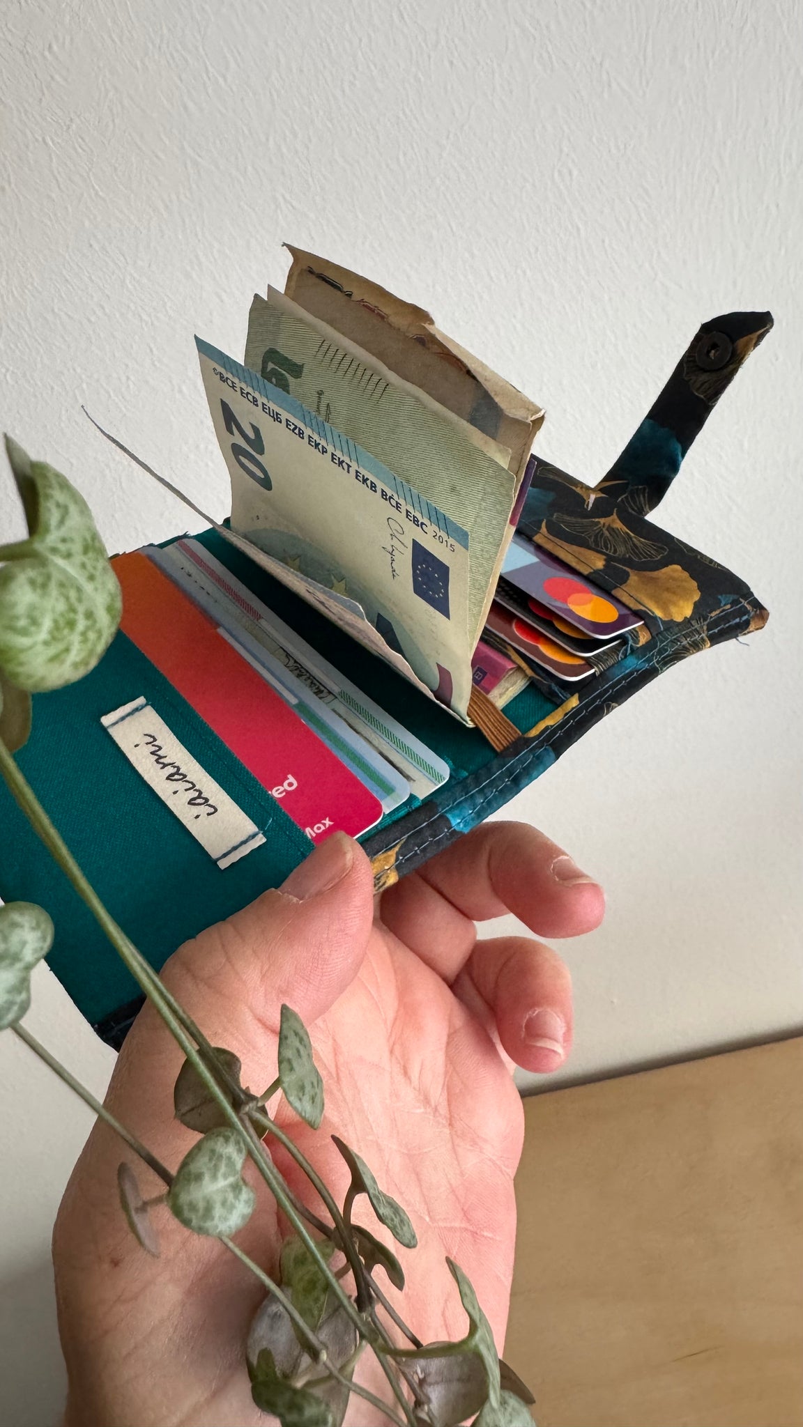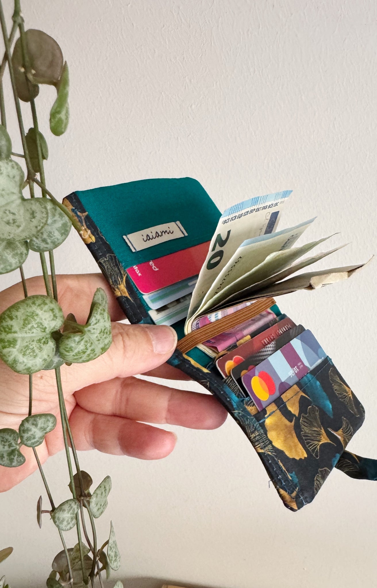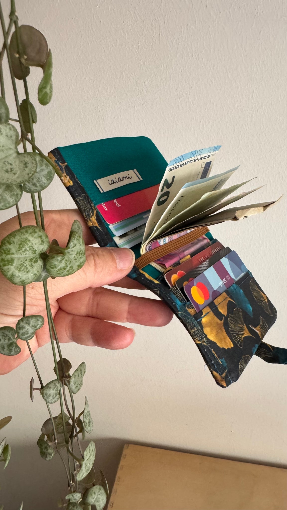 Realizzato a mano, ha 8 taschini, 6 per le tessere/carte e due più capienti.