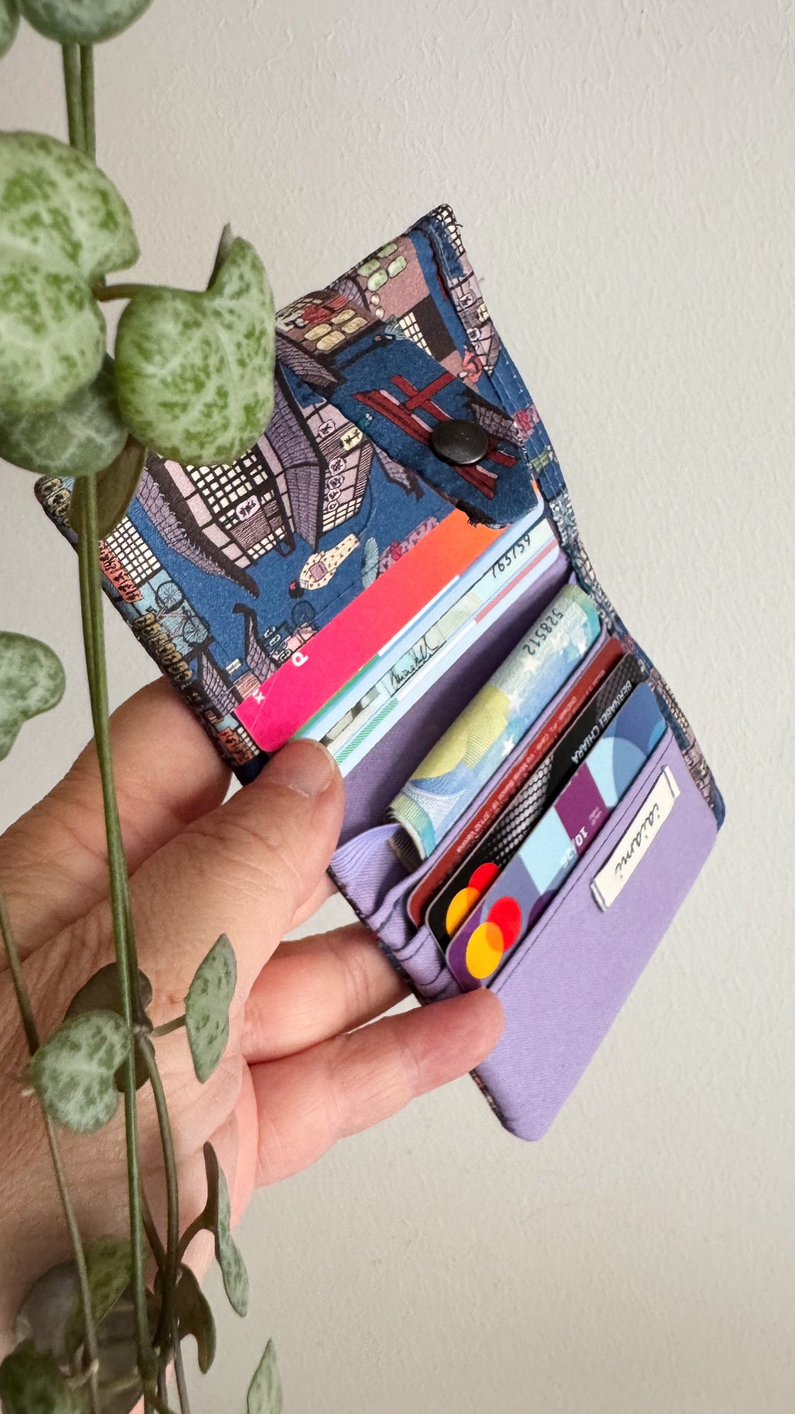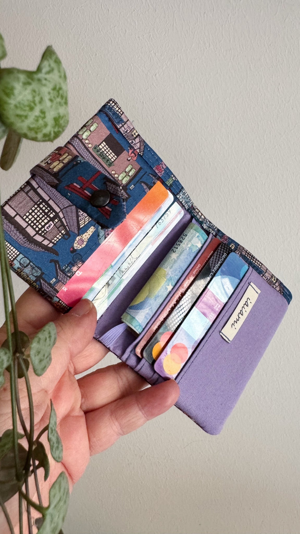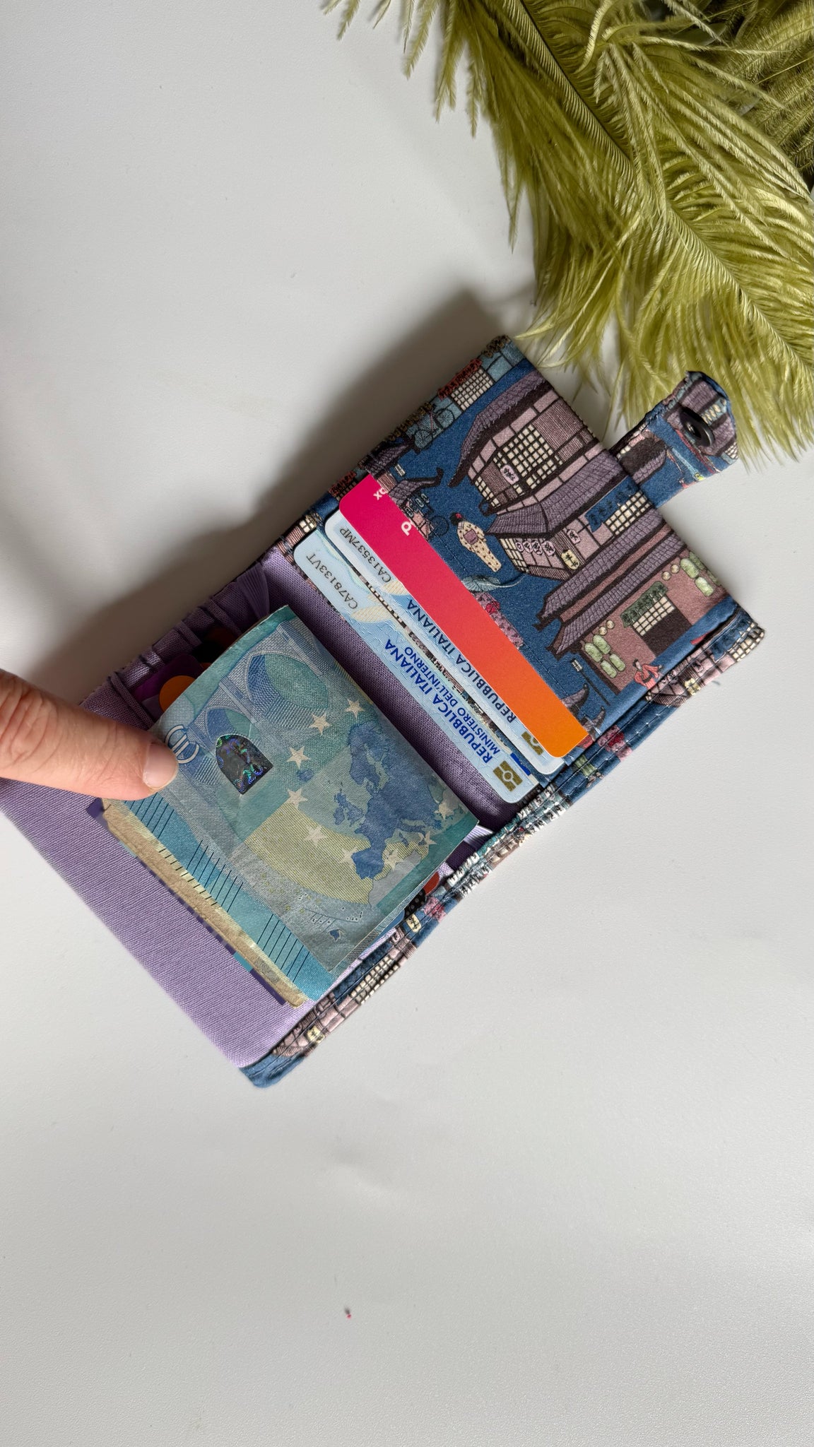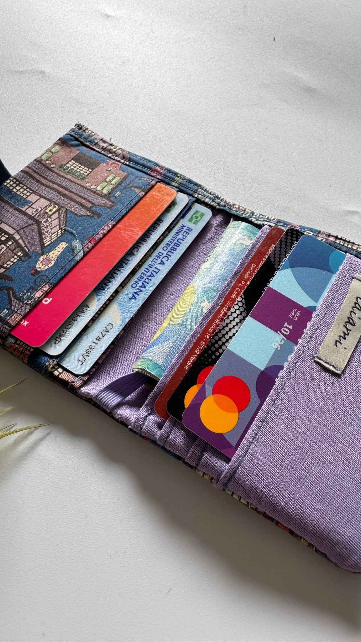 Realizzato a mano, ha 8 taschini, 6 per le tessere/carte e due più capienti.