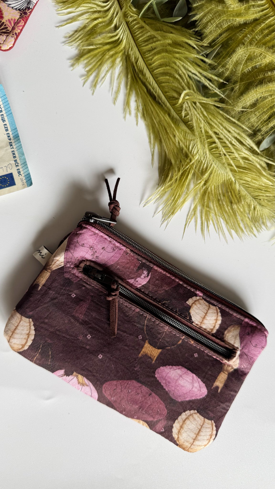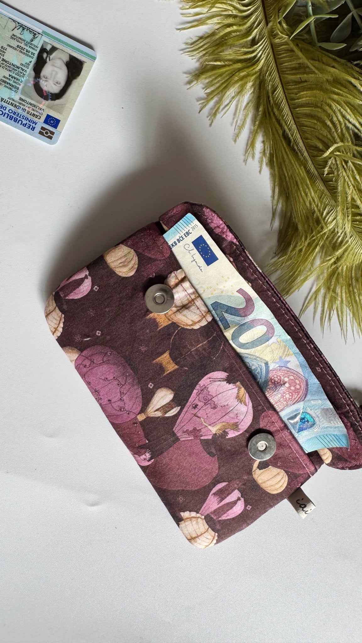 Pensata come un portafoglio slim che può contenere nella tasca grande (con chiusura lampo) i documenti (carta d’identità o passaporto), carte/tessere, contanti o altro, nella tasca piccola con apertura con i bottoni magnetici le banconote e nella tasca sul retro le monetine.