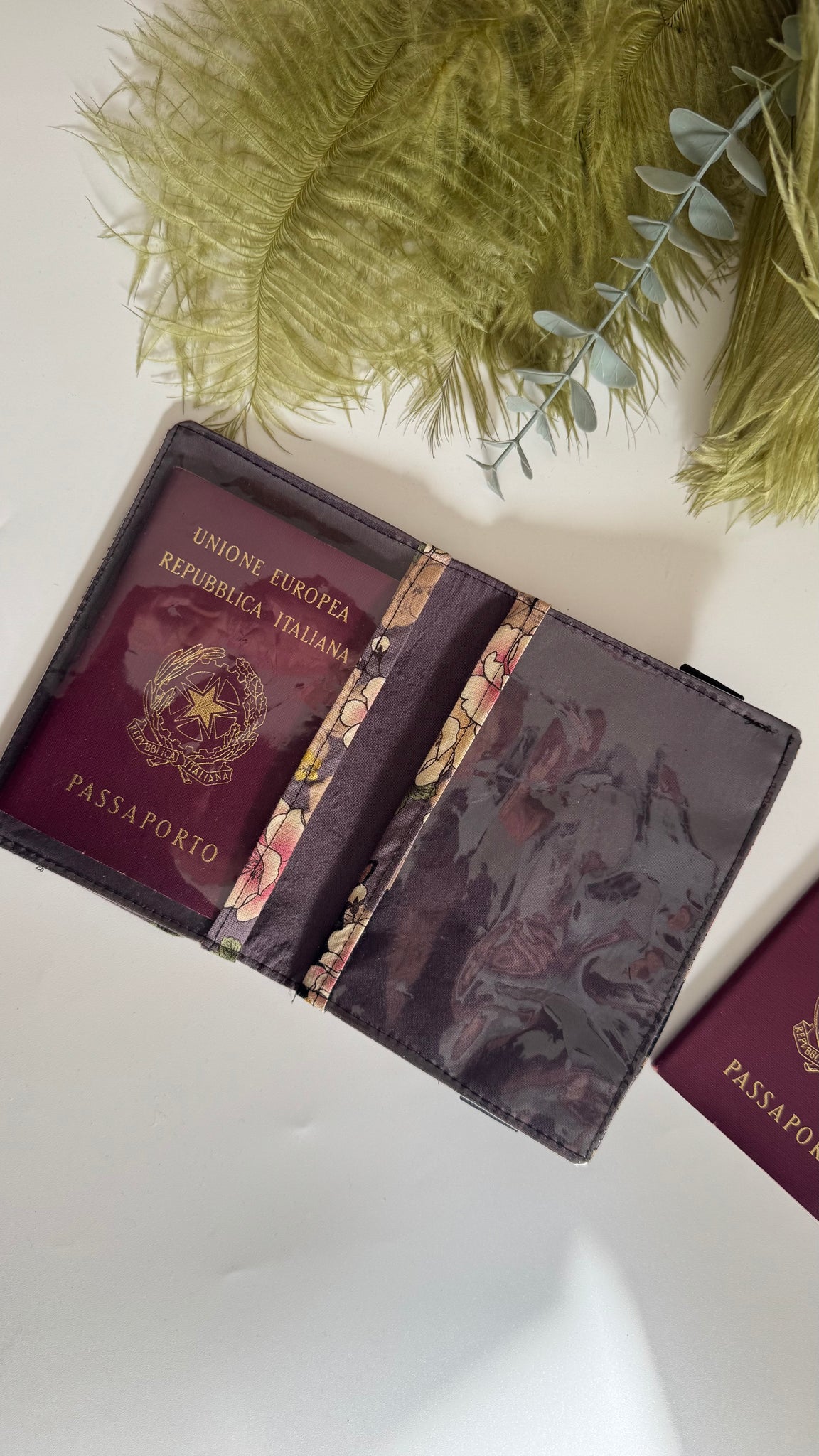 Il porta passaporto e‘ realizzata completamente a mano.