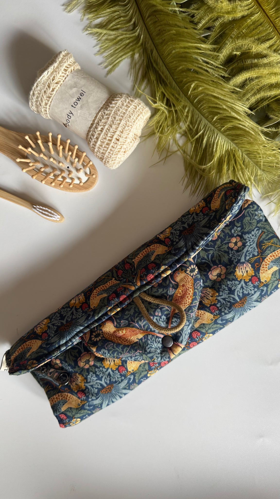Compatto, arrotolabile e super funzionale, contiene tutto ciò che ti serve senza occupare spazio inutile. Perfetto per vacanze, weekend fuori porta… o anche solo per avere ordine tra i tuoi trucchi a casa.