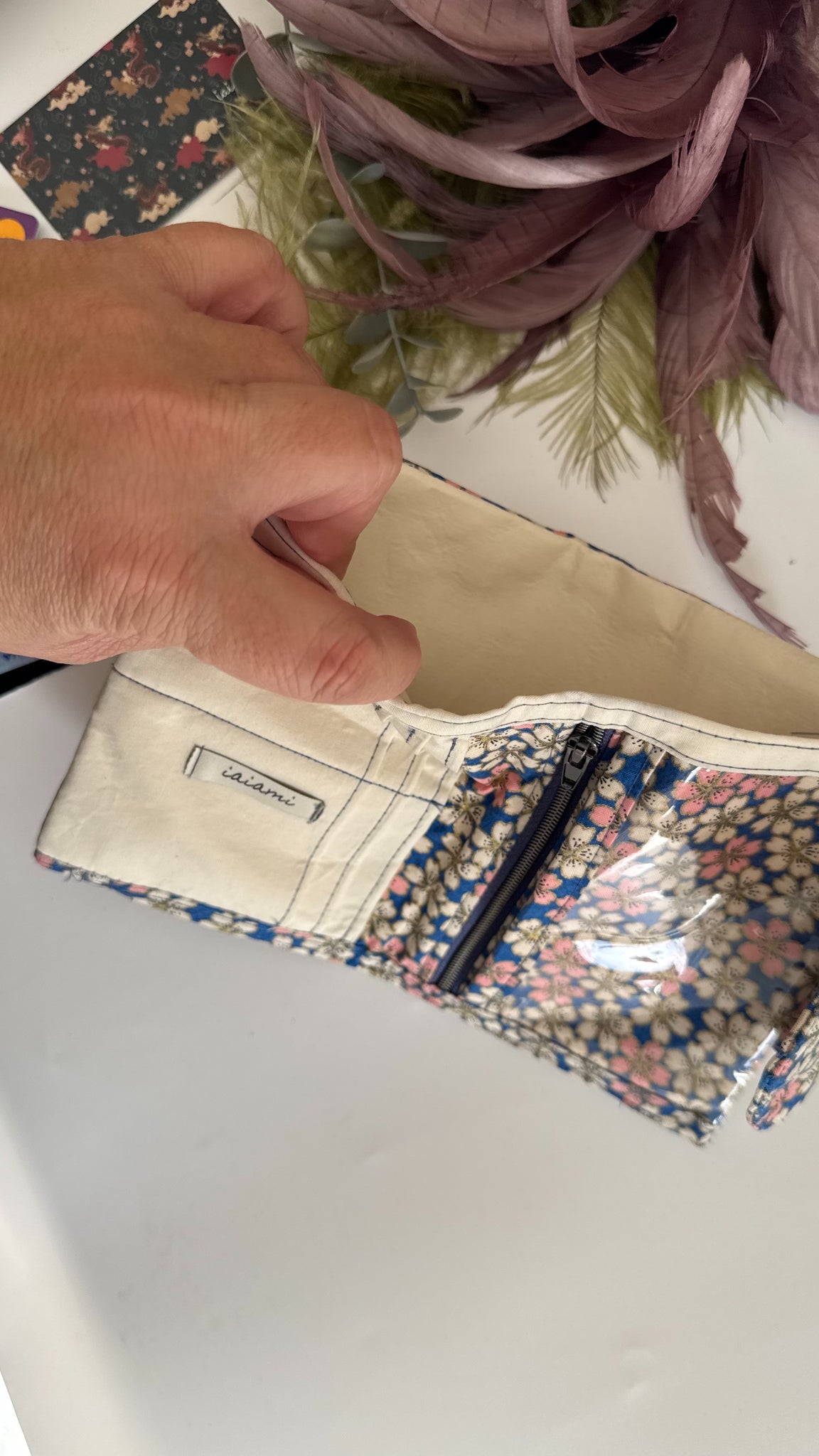 Le midì è un portafoglio realizzato completamente a mano in cotone satin dalle dimensioni contenute.