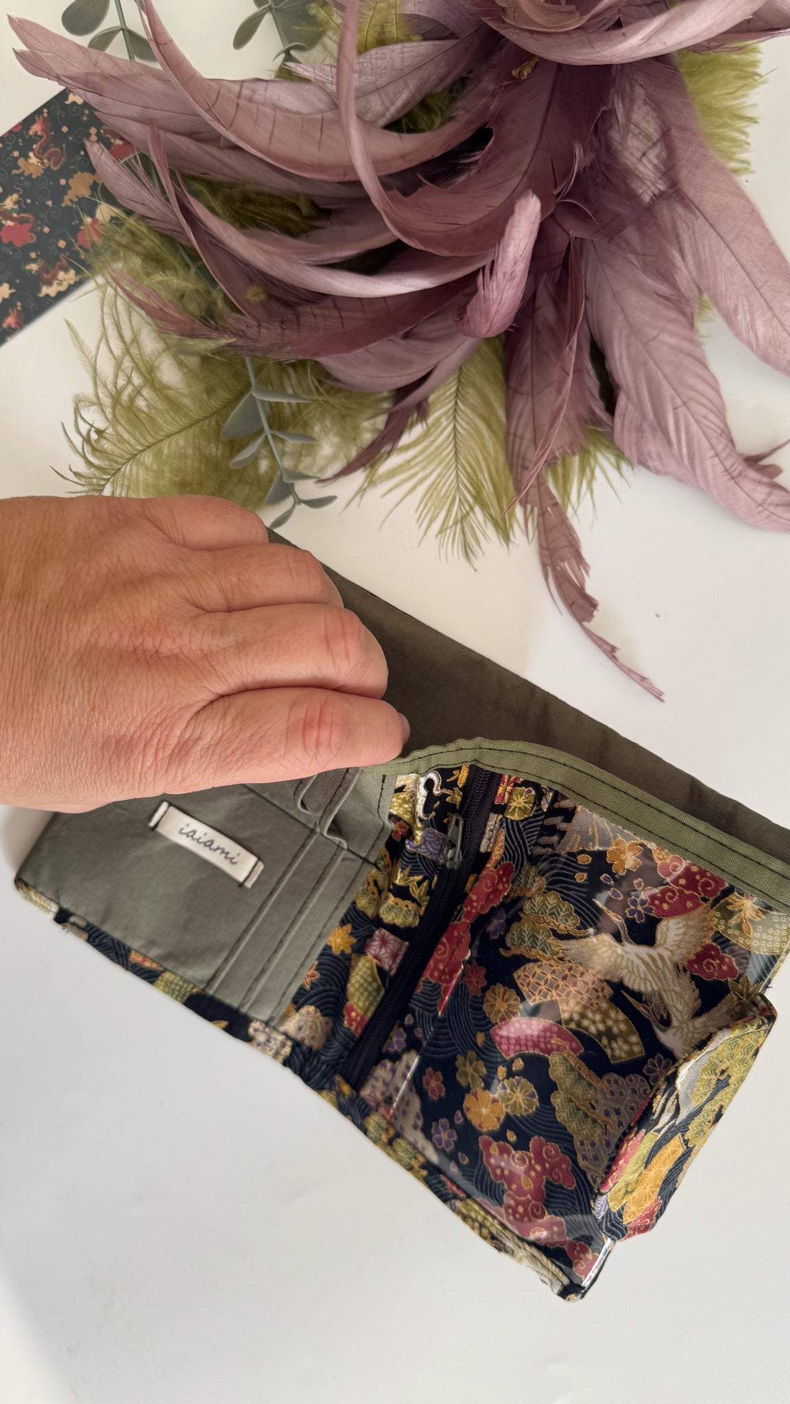 Le midì è un portafoglio realizzato completamente a mano in cotone satin dalle dimensioni contenute.